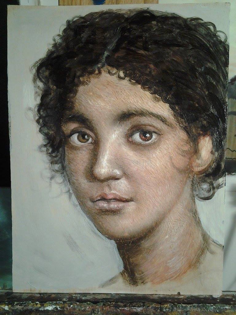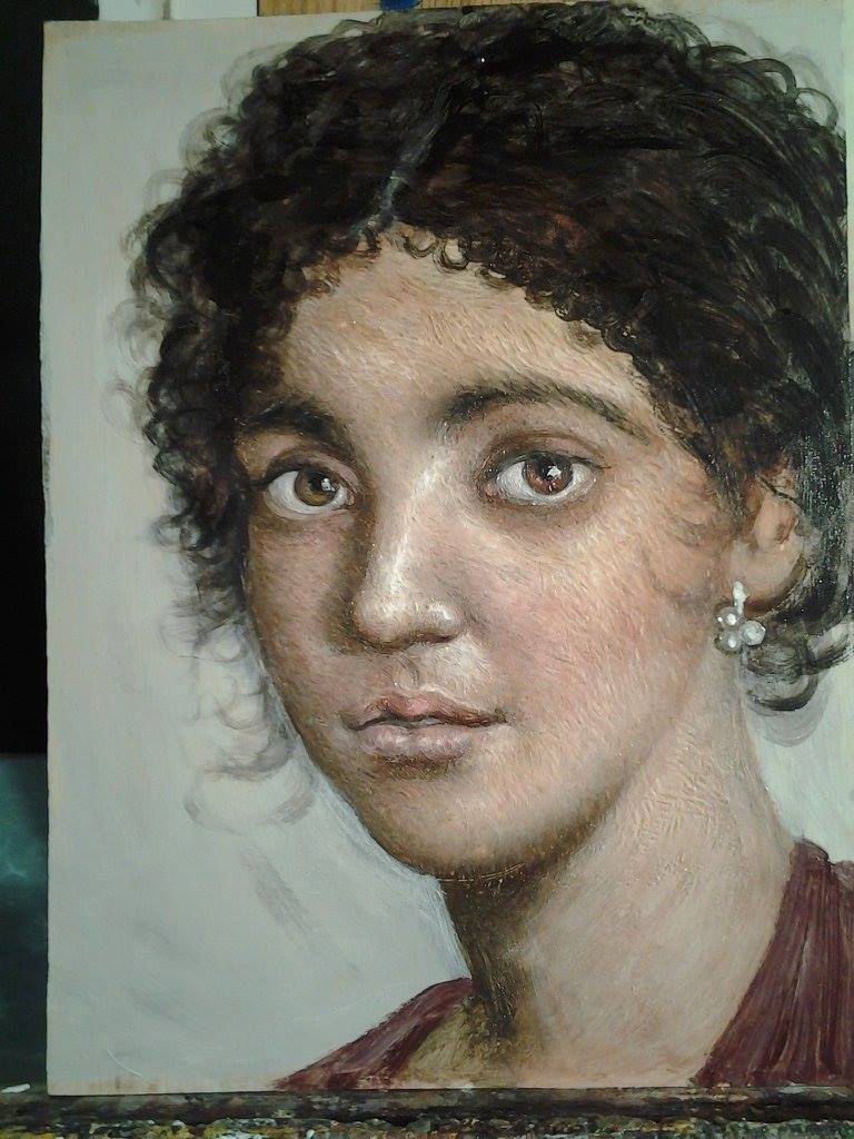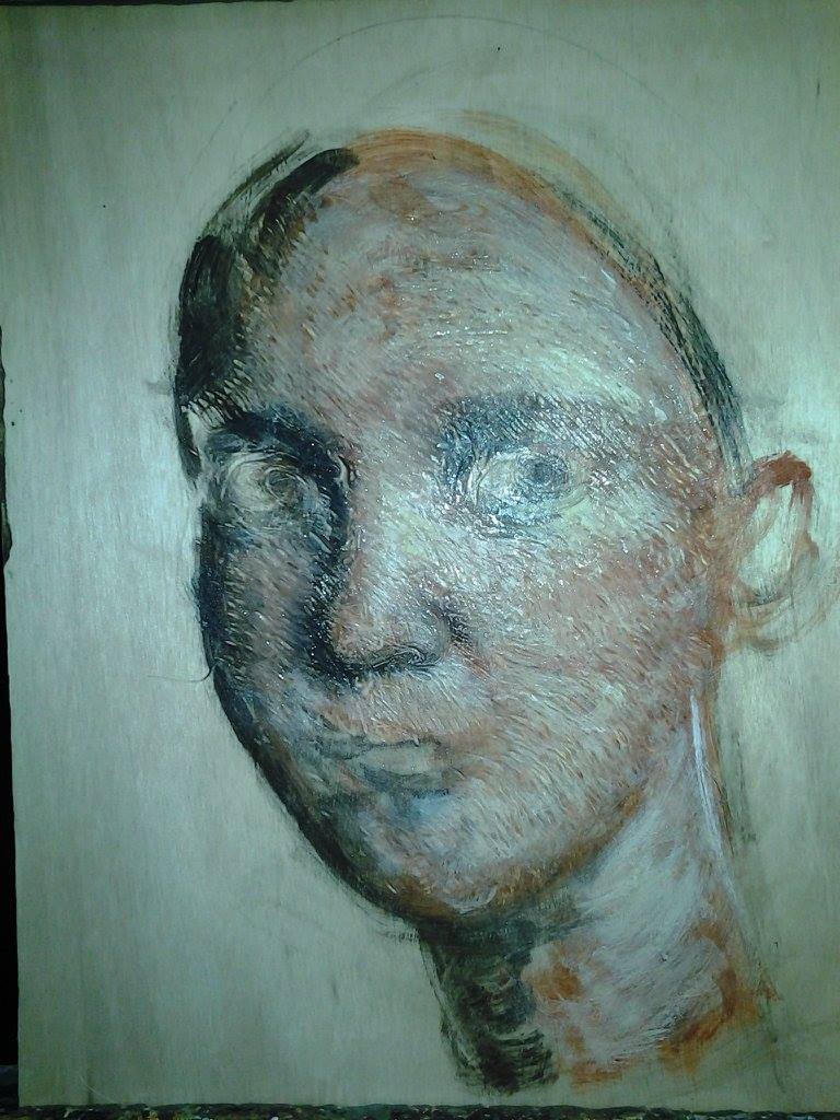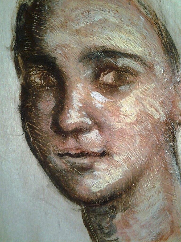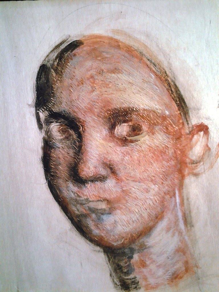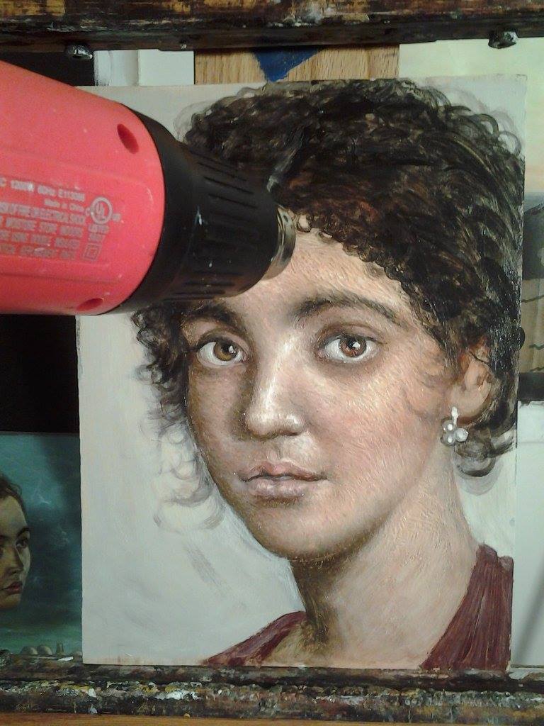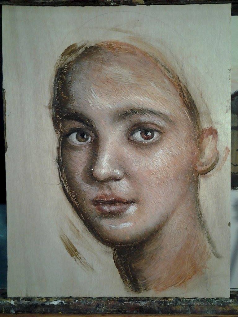I started with a wood panel with no preparation. The artists from Fayum in ancient Egypt would normally work on a panel with a layer of rabbit skin glue. Since these are waxes the artist can choose to use a size or not.