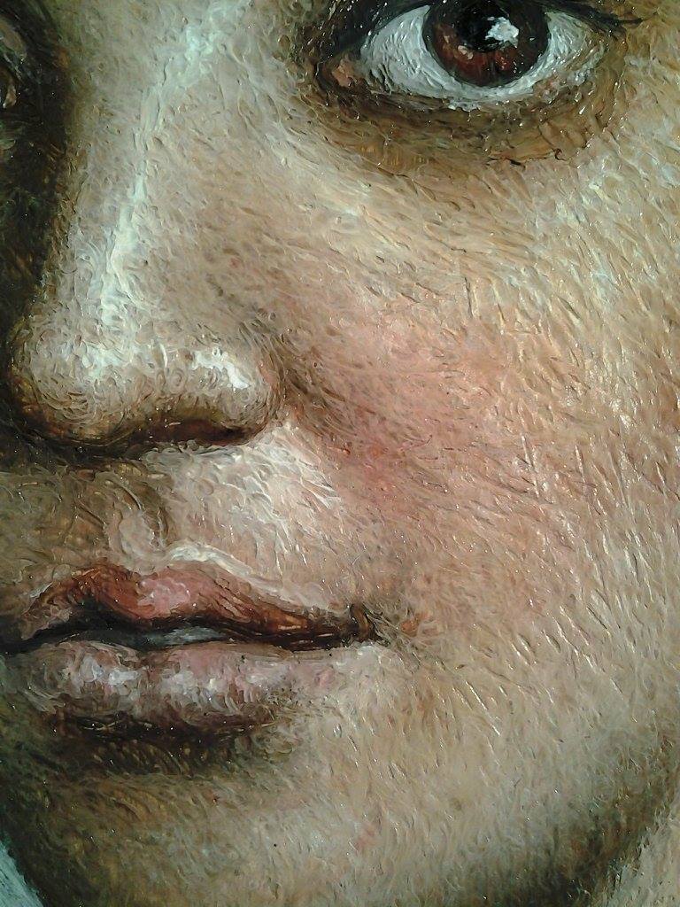 In raking light one can see the surface texture of the wax portrait.