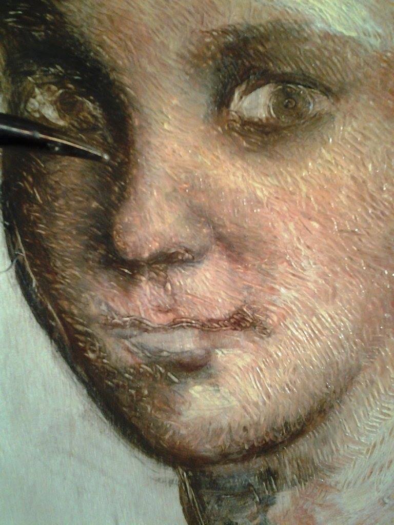 I continue to refine the flesh tones with many thin layers of Ceracolors and Ceracolors Gel.